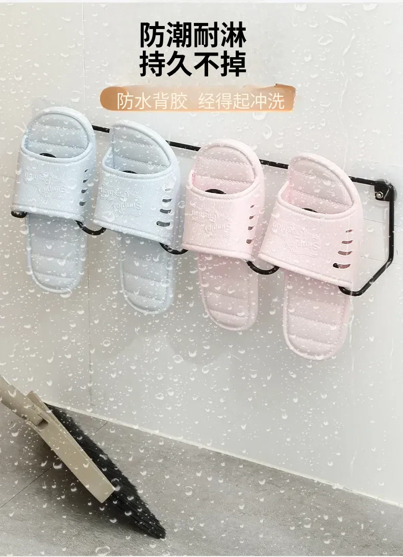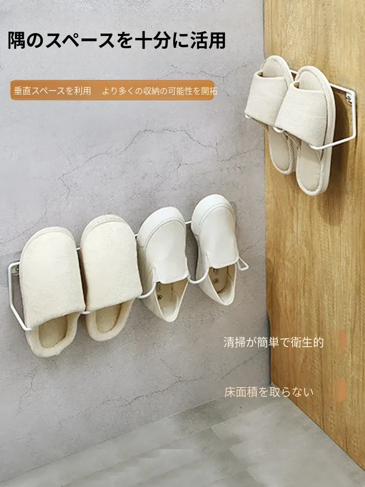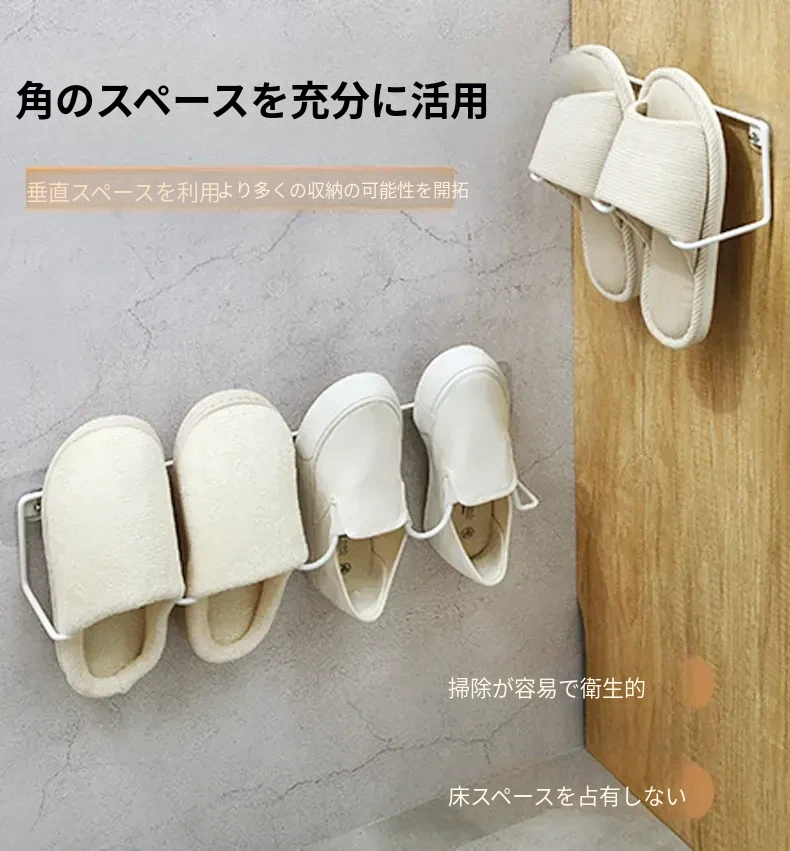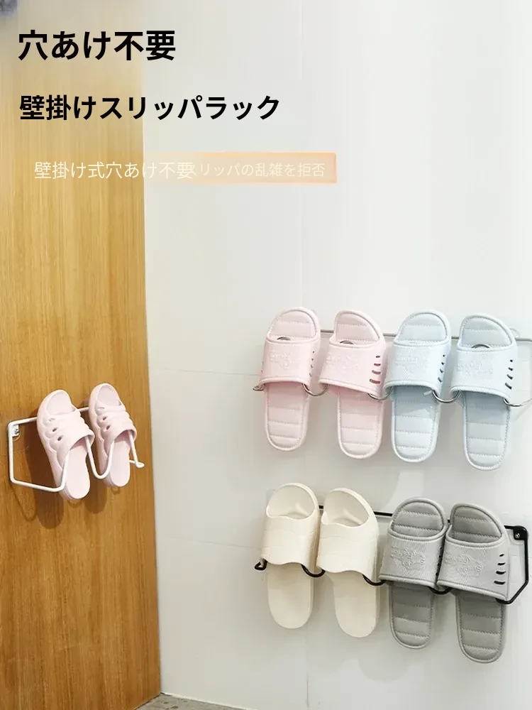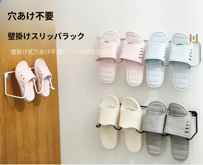 壁掛けトイレ用スリッパラック - 簡単取り付け&水切り機能付き!おしゃれなデザインで、スペースを有効活用。あなたのバスルームをスッキリ整頓!