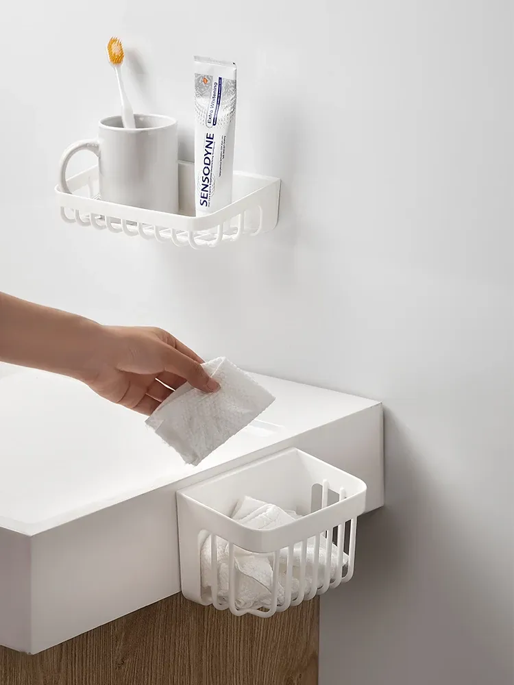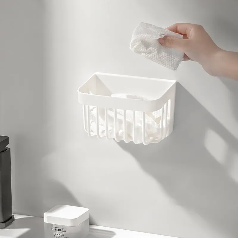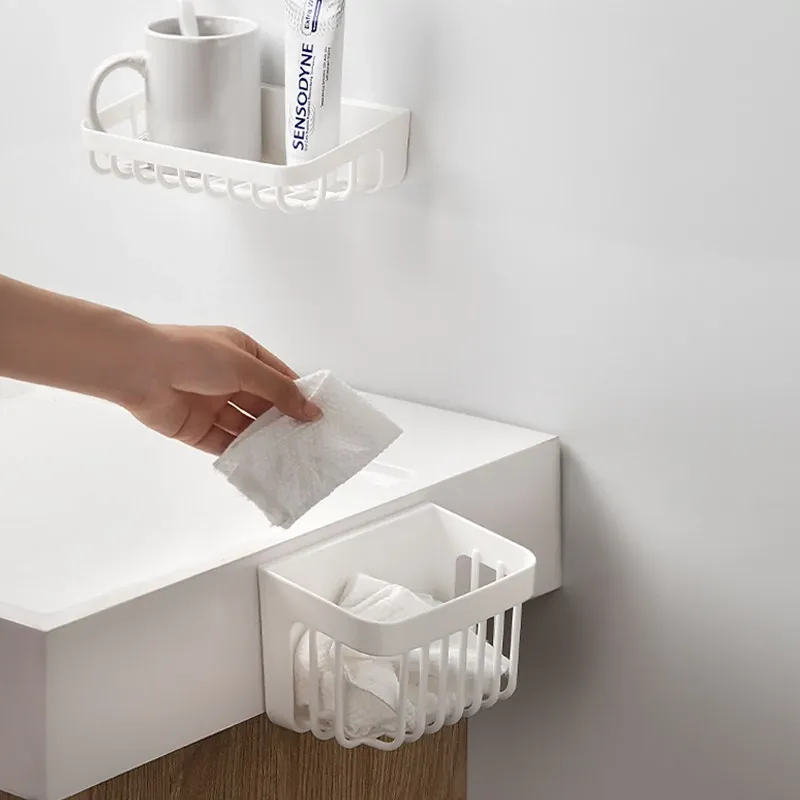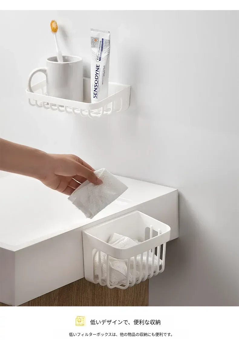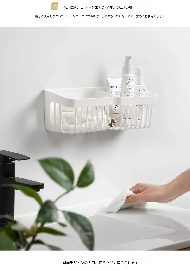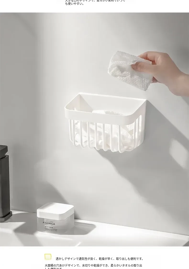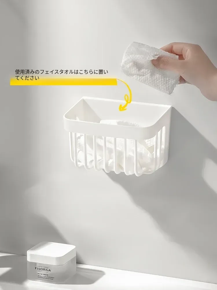 洗顔タオル収納ボックス|使い捨てティッシュリサイクルバスケット|壁掛け収納バケツ|二次収納ラック|水切り機能付き!あなたの洗面所をスッキリ整頓!