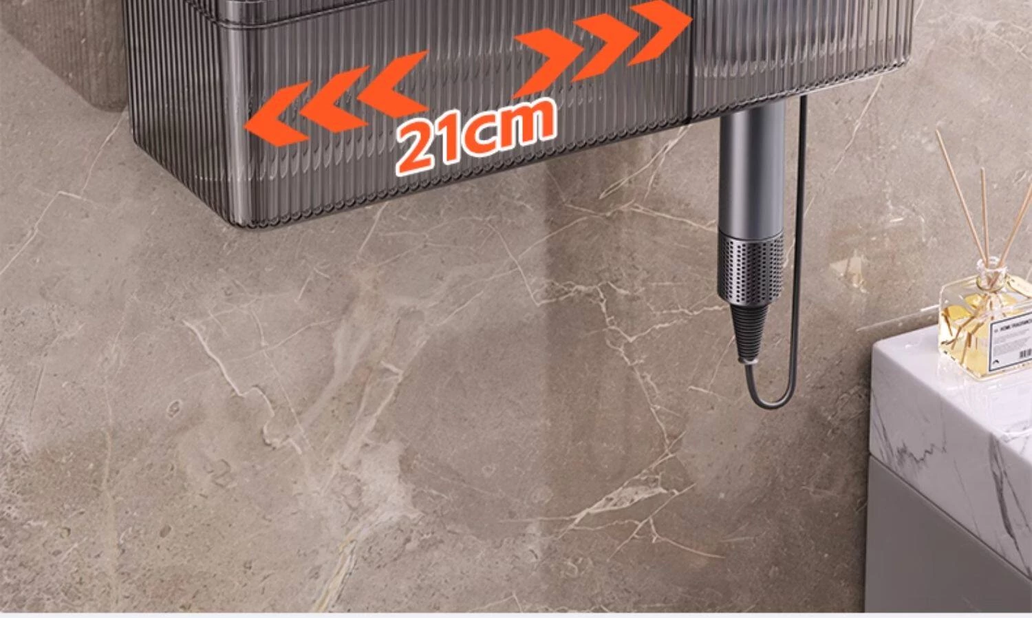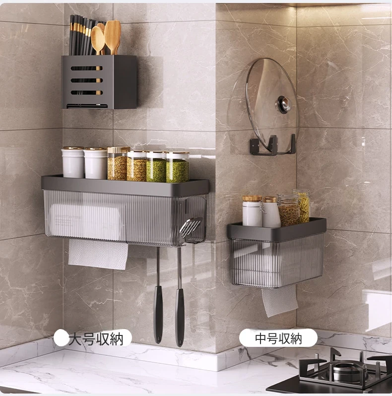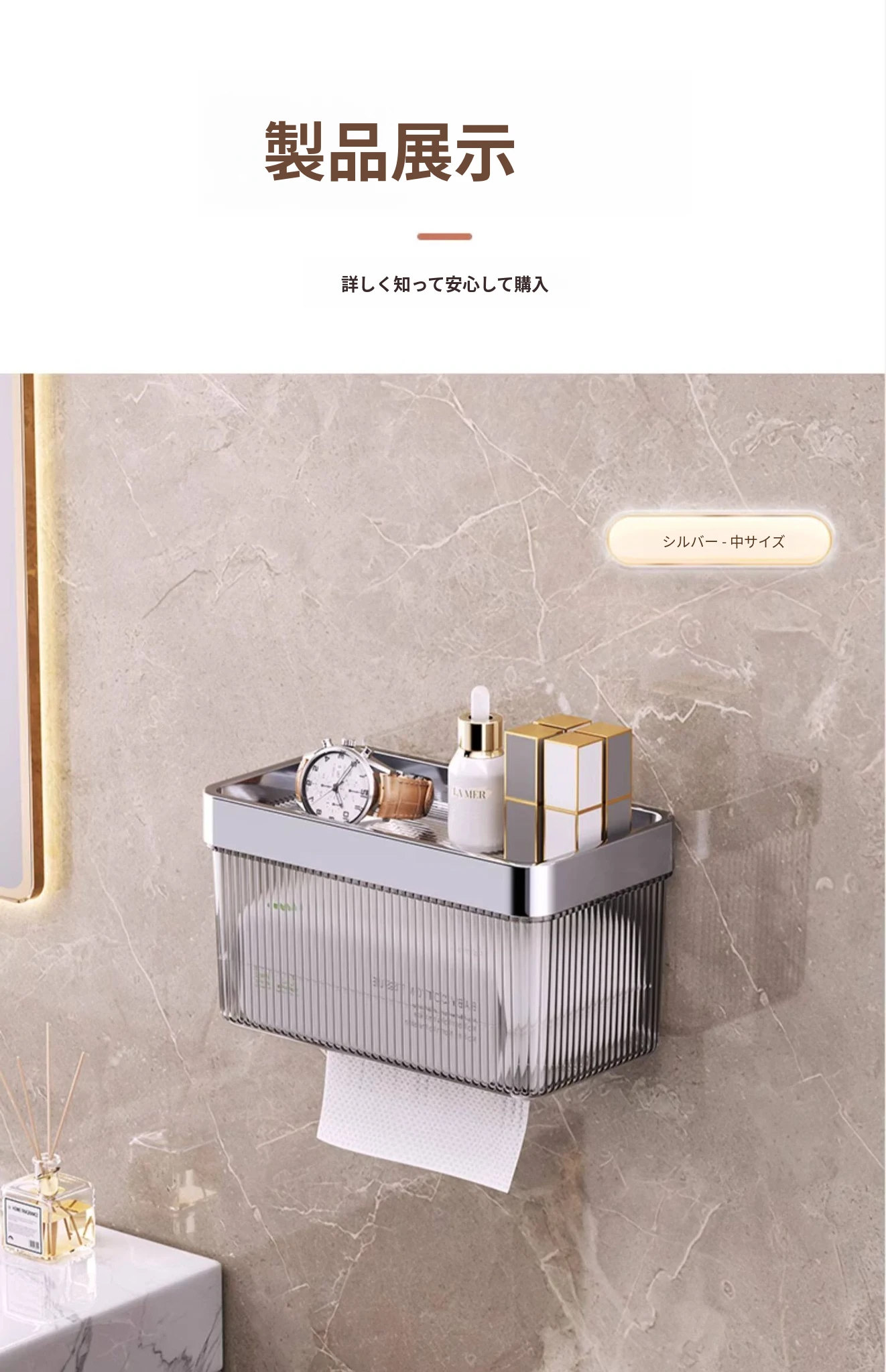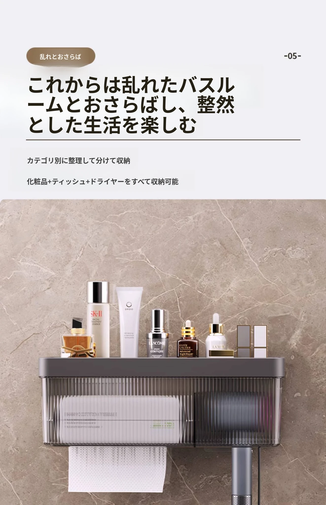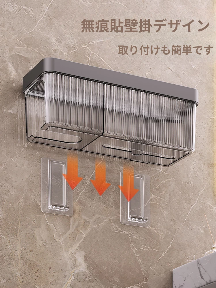 壁掛け式ヘアドライヤー収納ラック - 取り付け不要でおしゃれな洗面所を実現!タオルやティッシュも収納できる便利なアイテム。家庭用に最適なスッキリ整理整頓をサポートします。