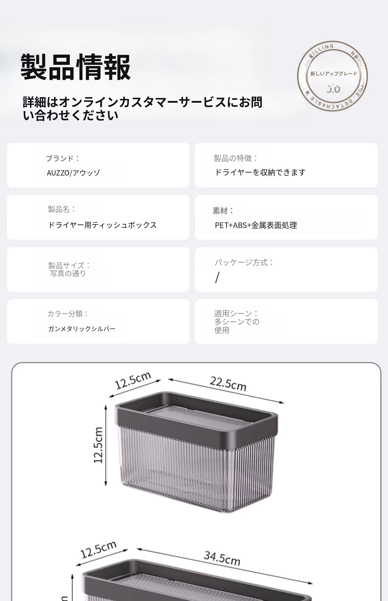 シルバー【ティッシュ/フェイスタオルラック】