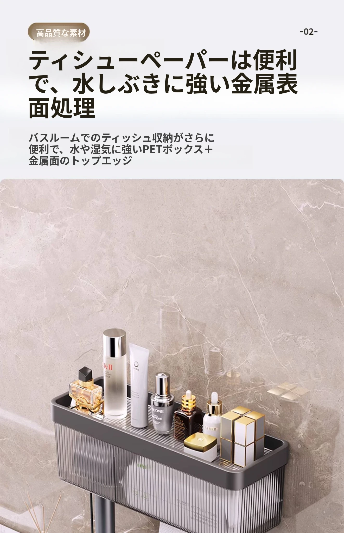 シルバー*2【ティッシュ/フェイスタオルラック】