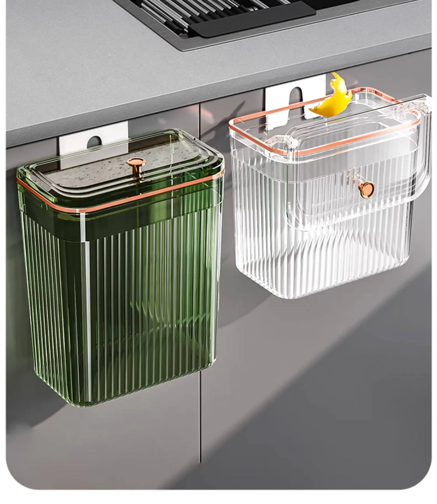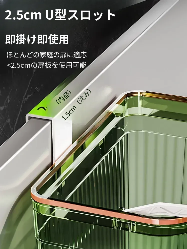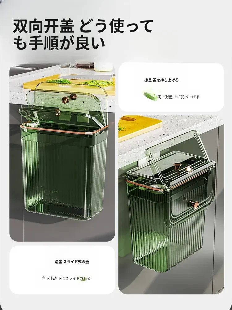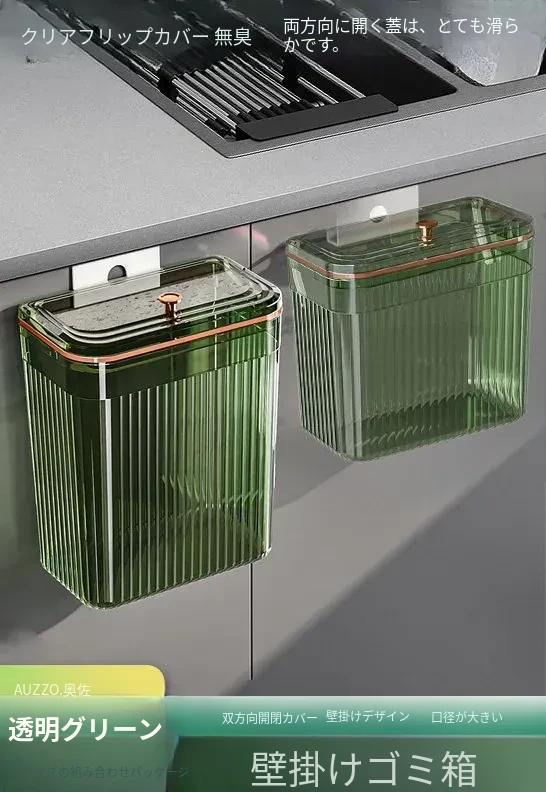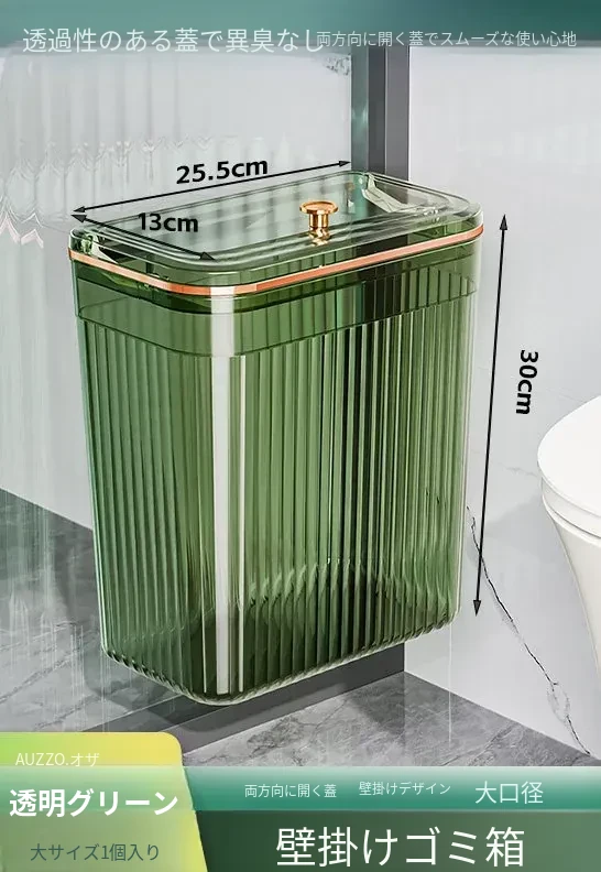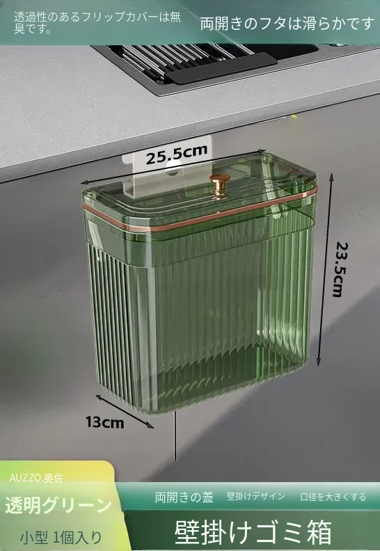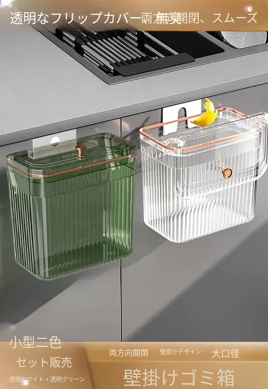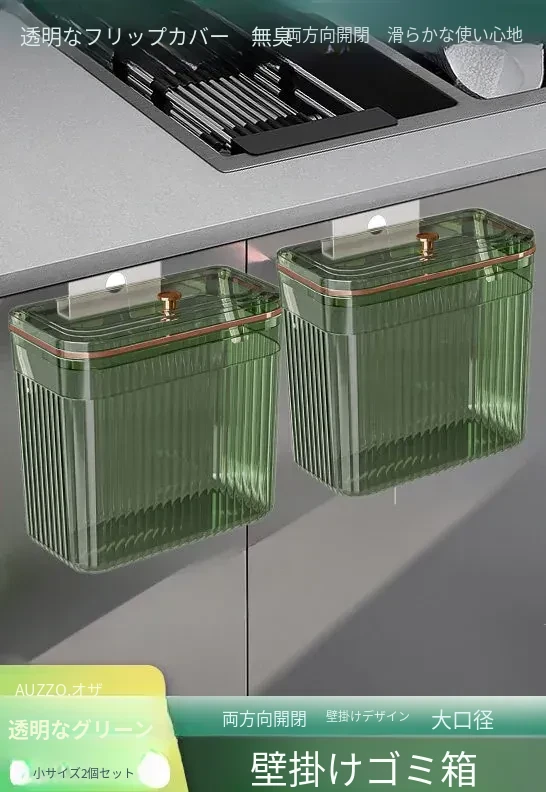 透明グリーン小号*2個セット【壁掛けスライド蓋ゴミ箱】