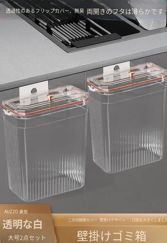 透明ホワイト大号*2個セット【壁掛けスライド蓋ゴミ箱】