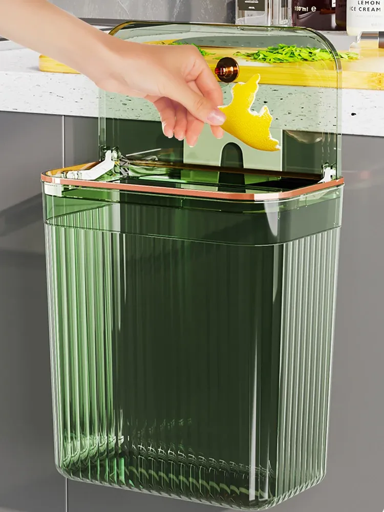 透明グリーン小号【壁掛けスライド蓋ゴミ箱】