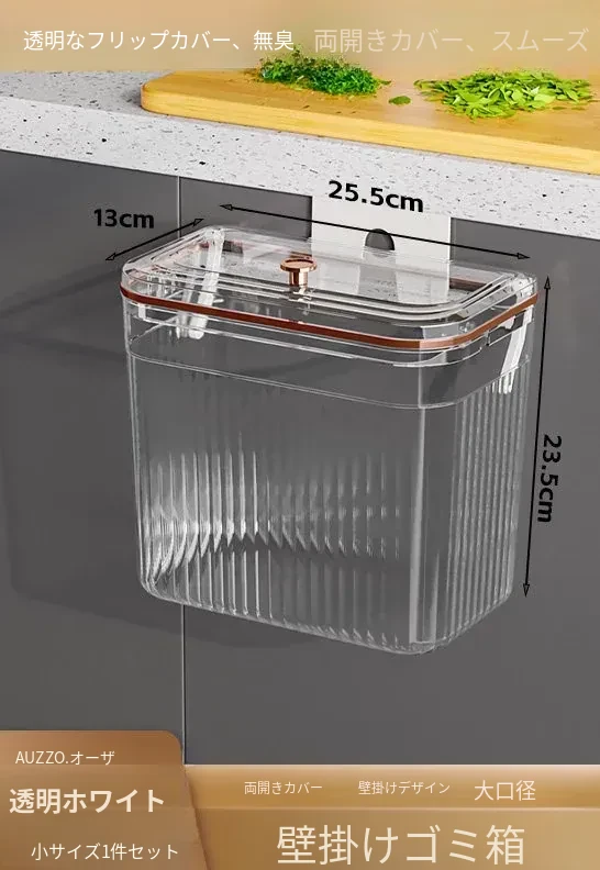 透明ホワイト小号【壁掛けスライド蓋ゴミ箱】