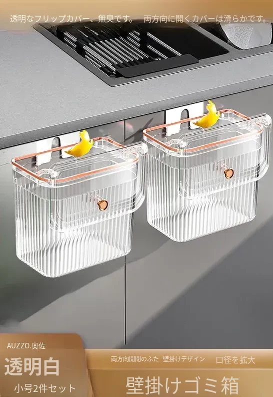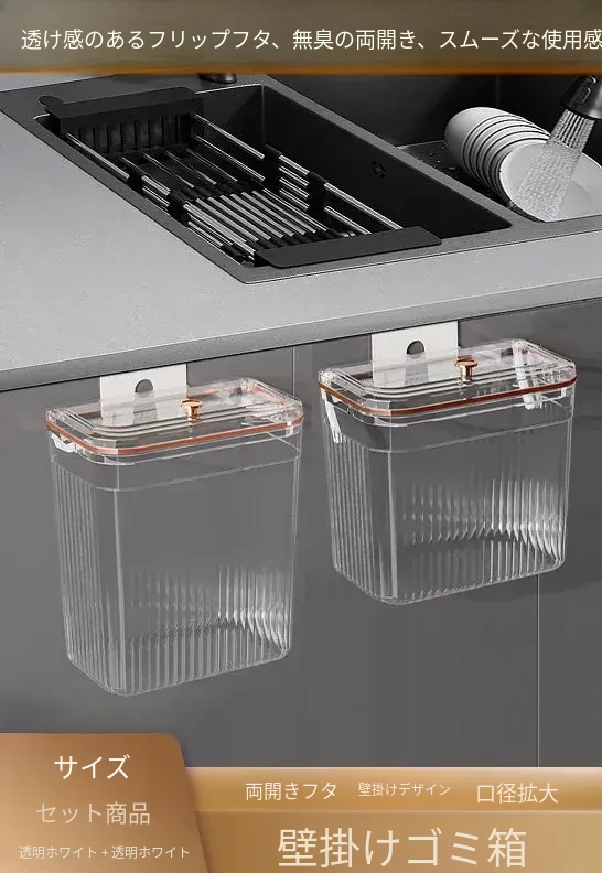 透明ホワイト小号*2個セット【壁掛けスライド蓋ゴミ箱】