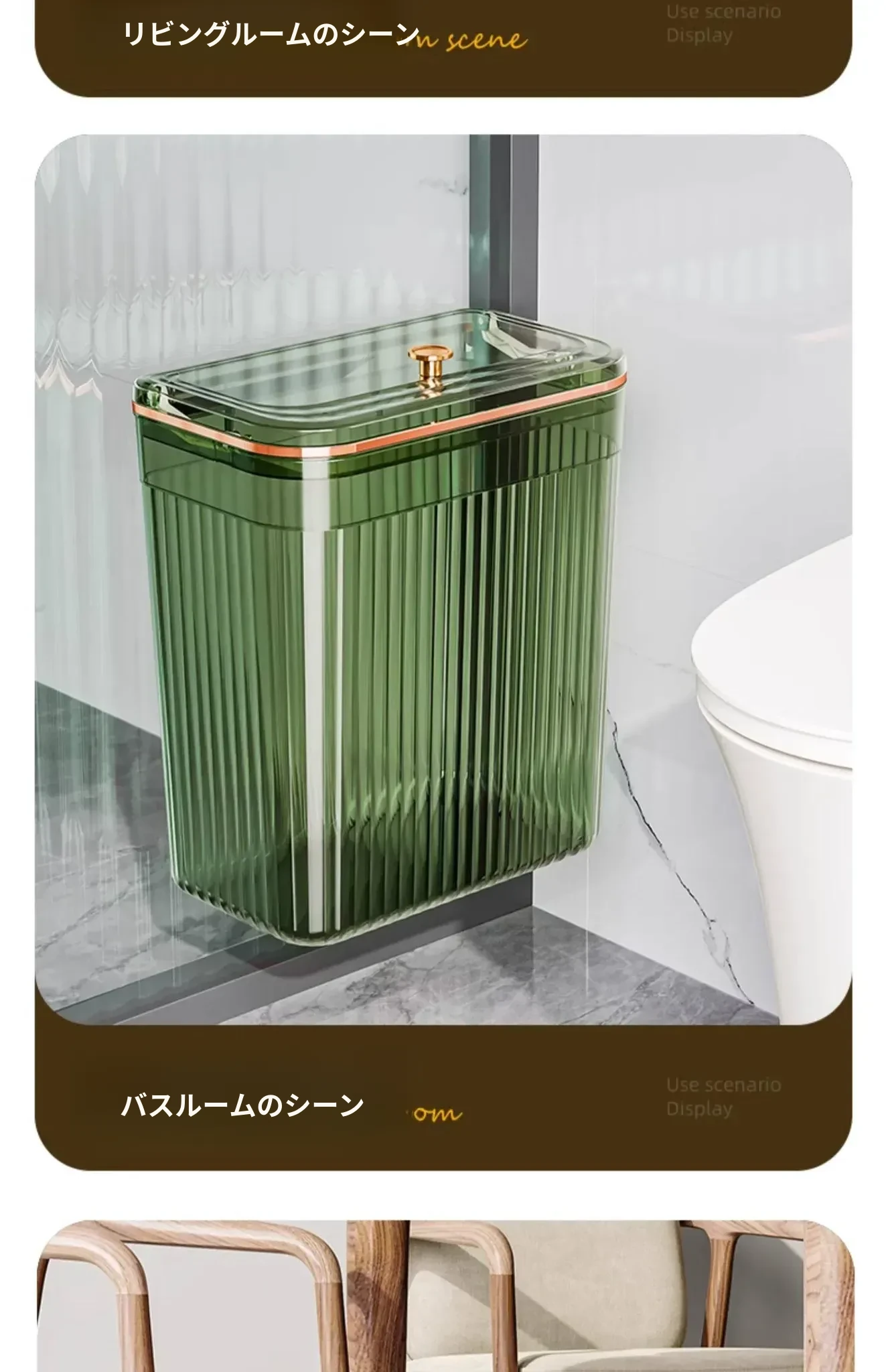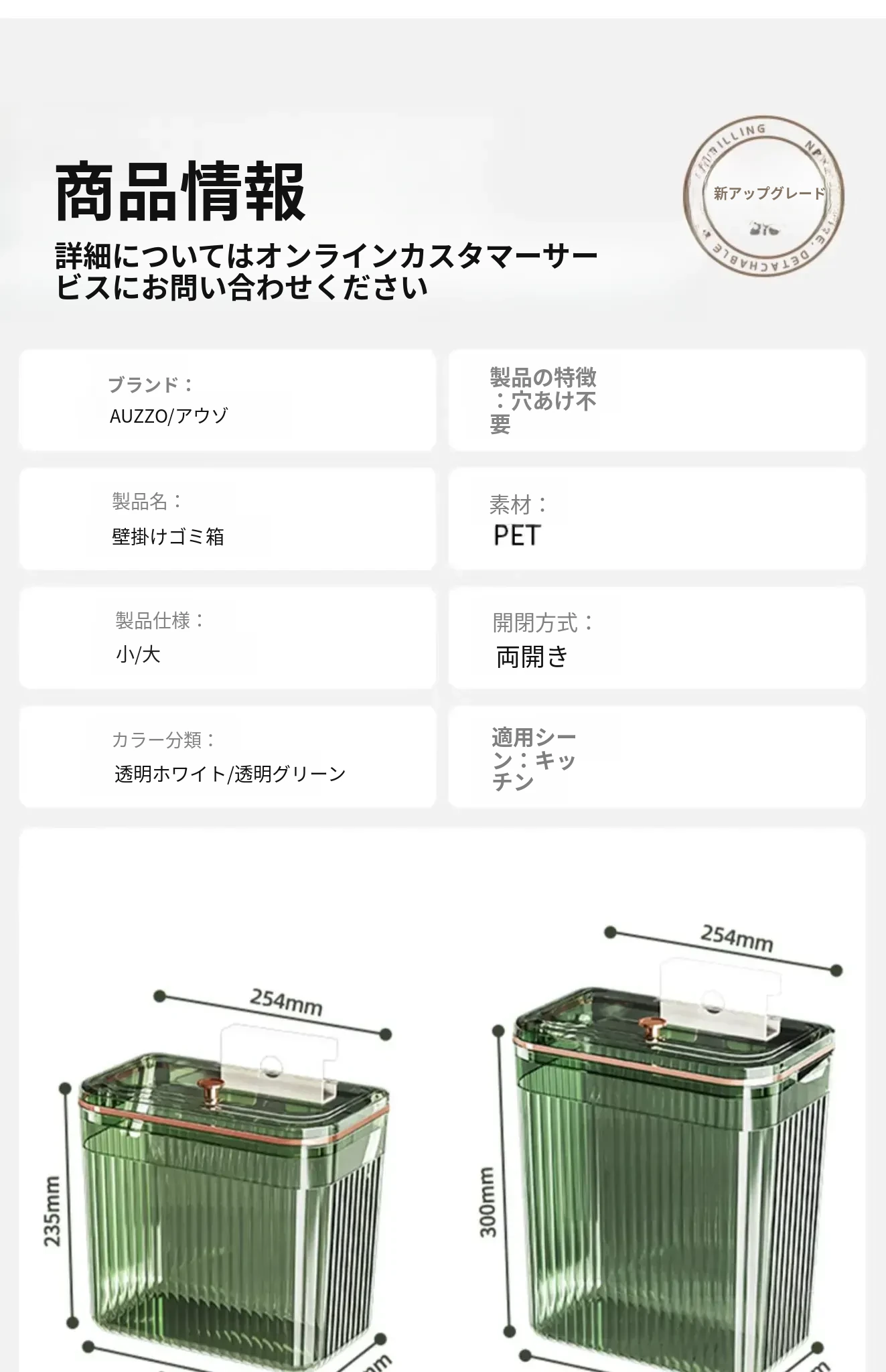透明グリーン大+小号【壁掛けスライド蓋ゴミ箱】