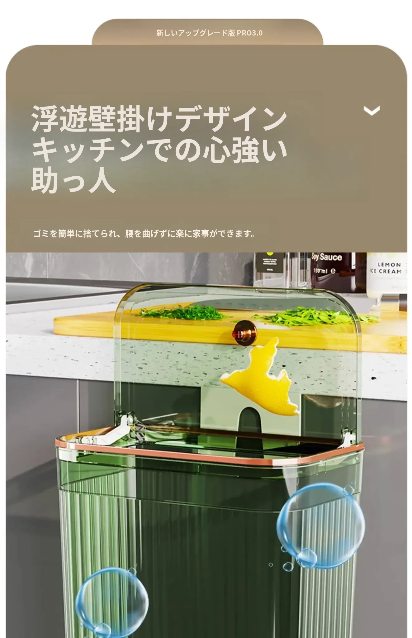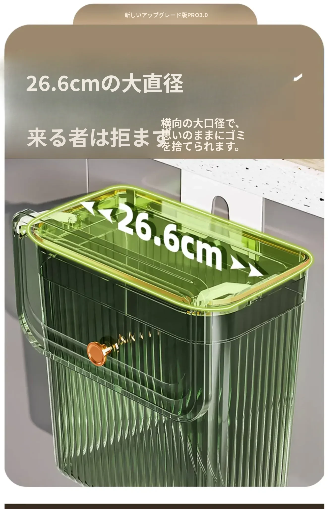 透明グリーン大号【壁掛けスライド蓋ゴミ箱】
