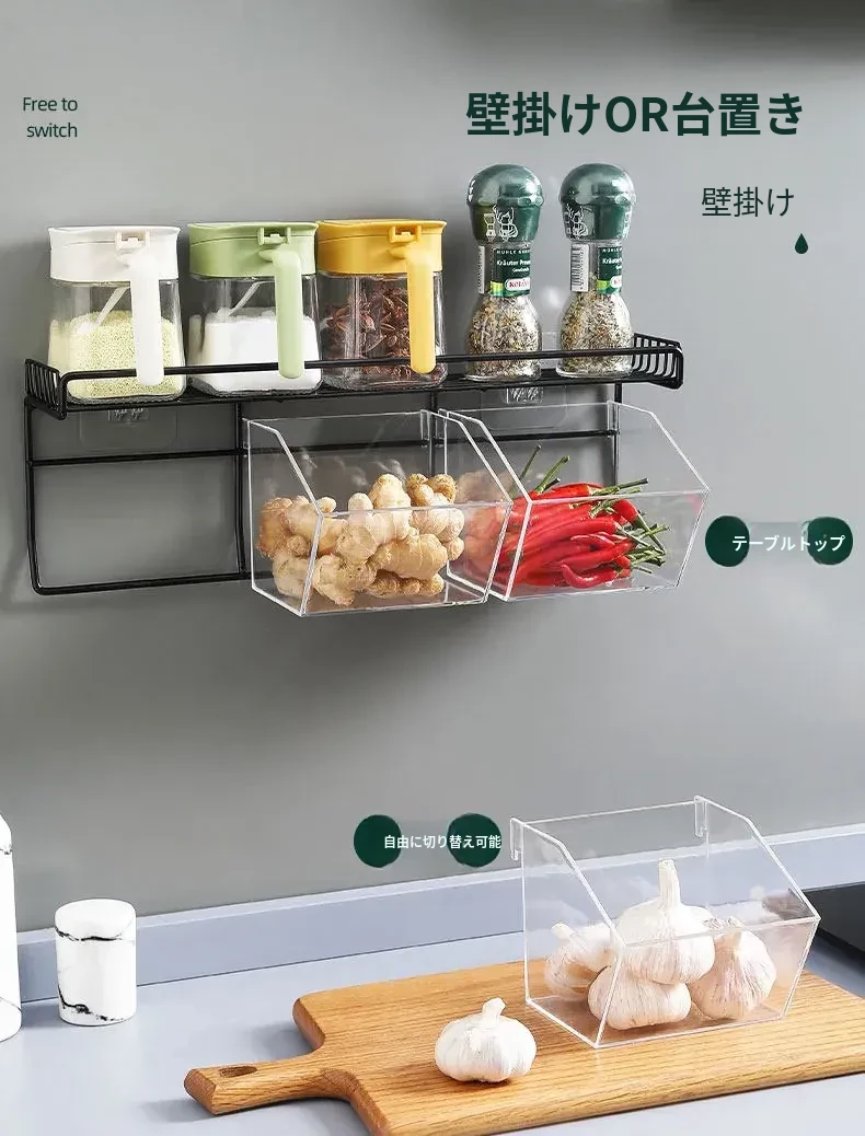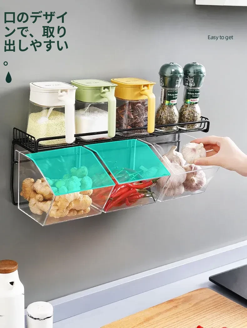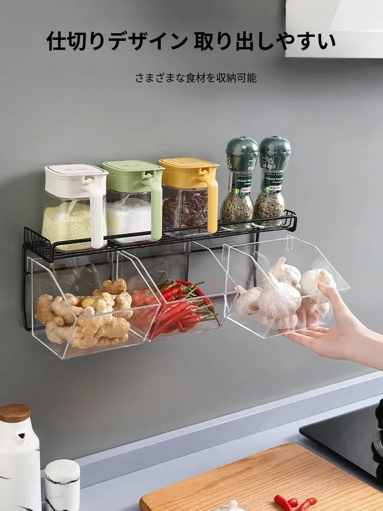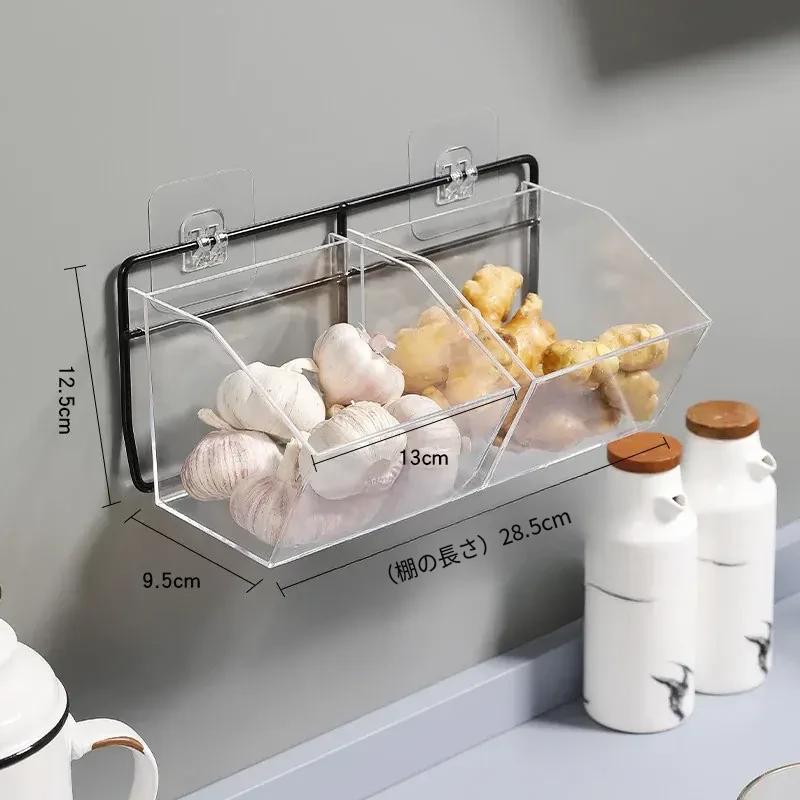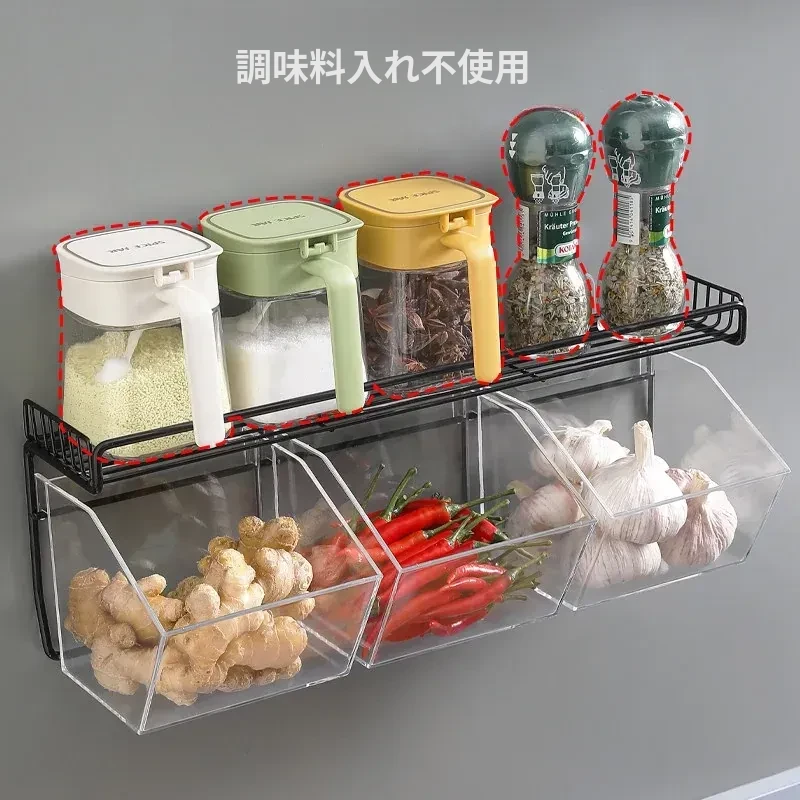 キッチン用壁掛けねぎしょうがにんにく収納ラック|生姜やにんにくをスッキリ整理!家庭用食材ストレージボックスの必需品、便利でスタイリッシュな収納アイテム!