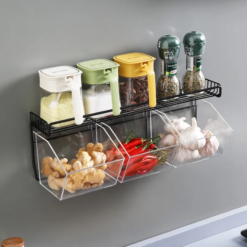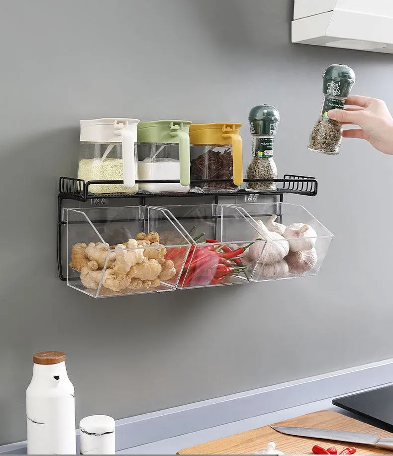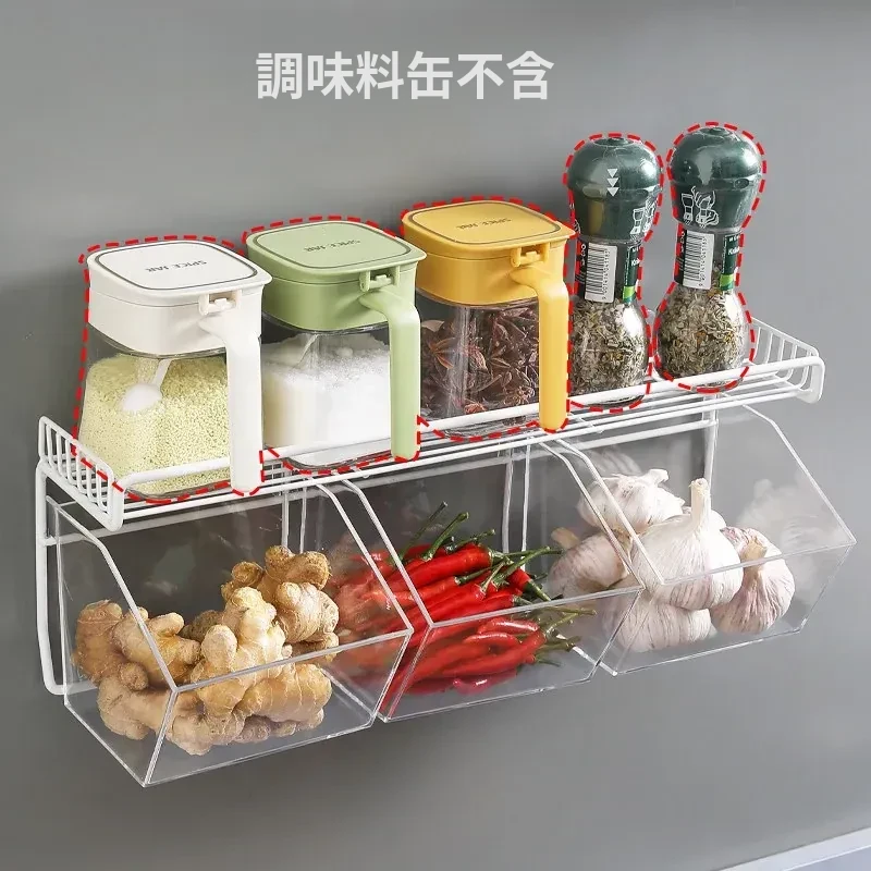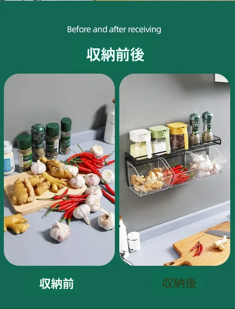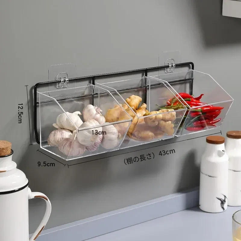 キッチン用壁掛けねぎしょうがにんにく収納ラック|生姜やにんにくをスッキリ整理!家庭用食材ストレージボックスの必需品、便利でスタイリッシュな収納アイテム!