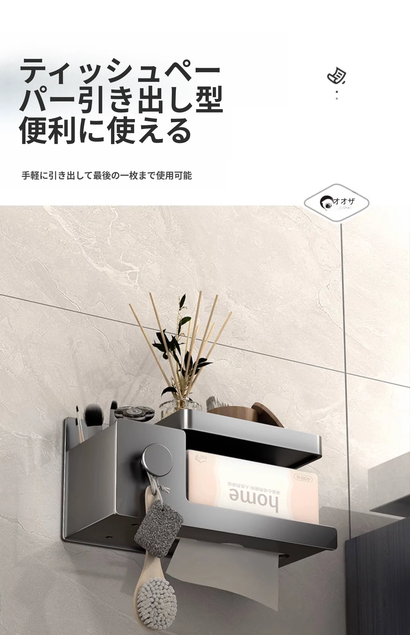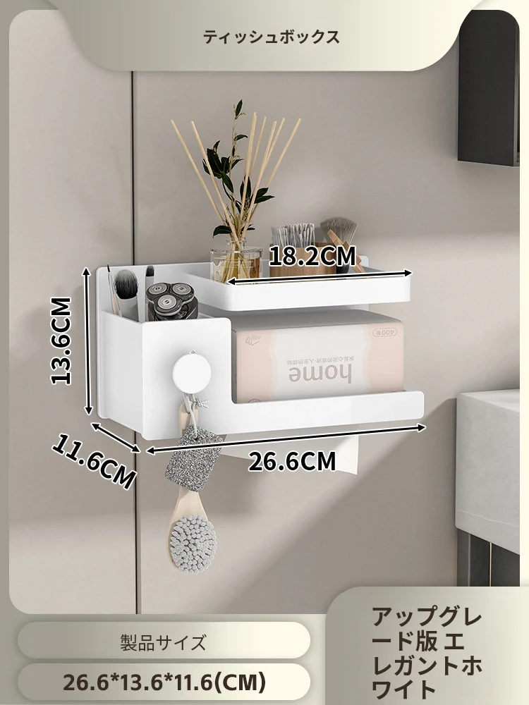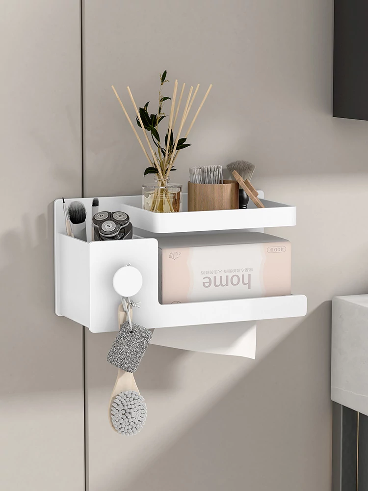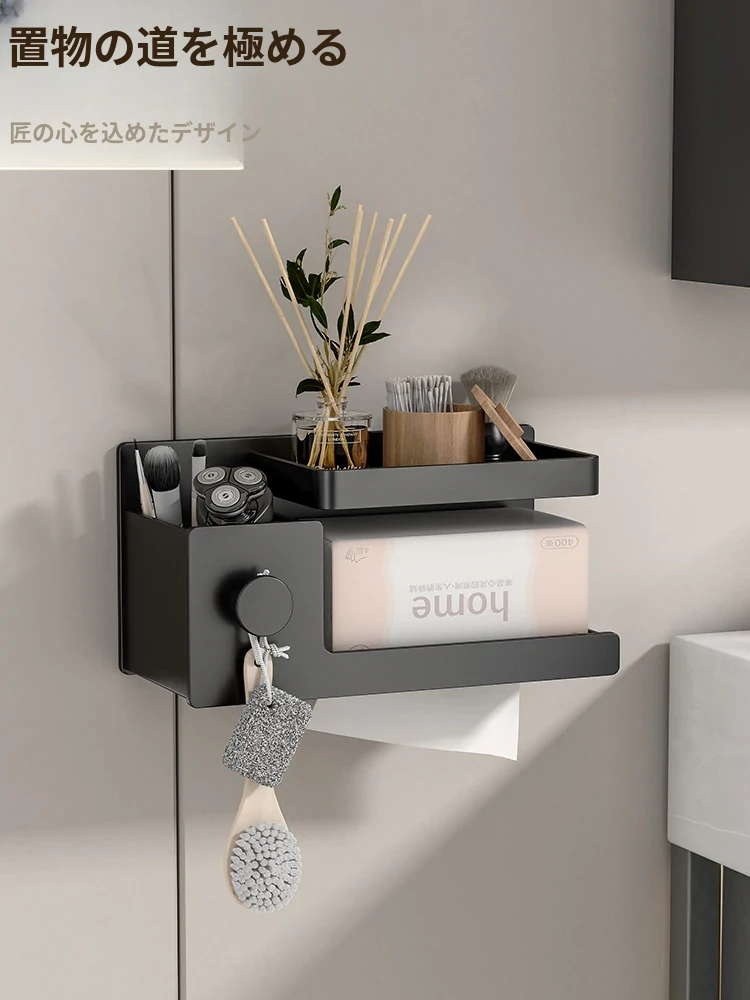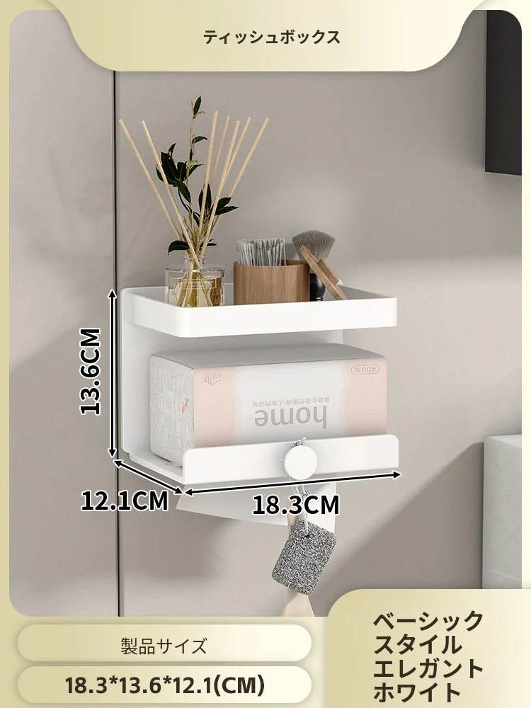 壁掛け式トイレットペーパー収納ボックス - ノーホール取り付け、バスルームやリビングに最適!ティッシュや洗顔タオルをスッキリ整理できる雑貨収納ラック。おしゃれで実用的な空間作りをサポートします!