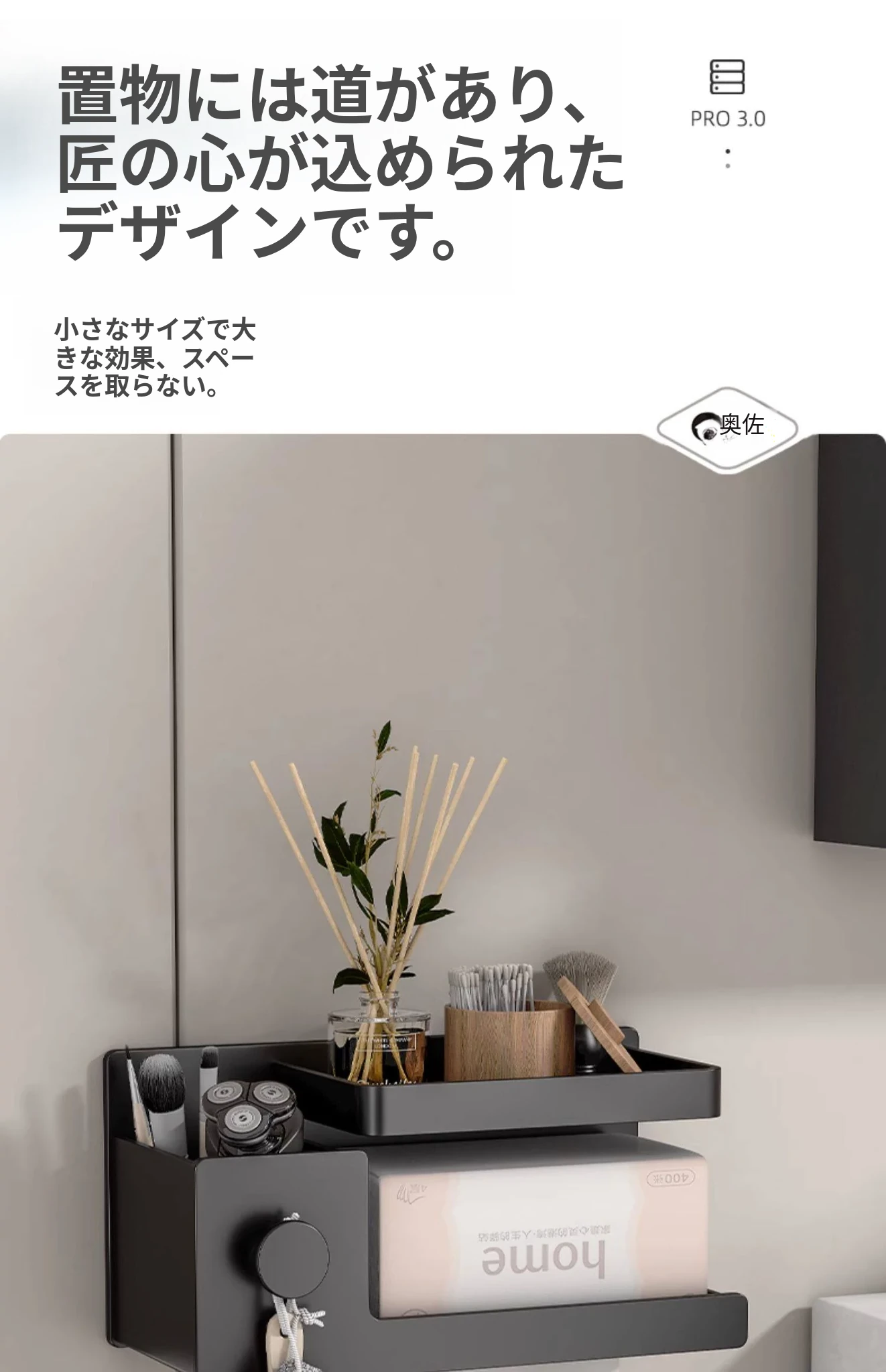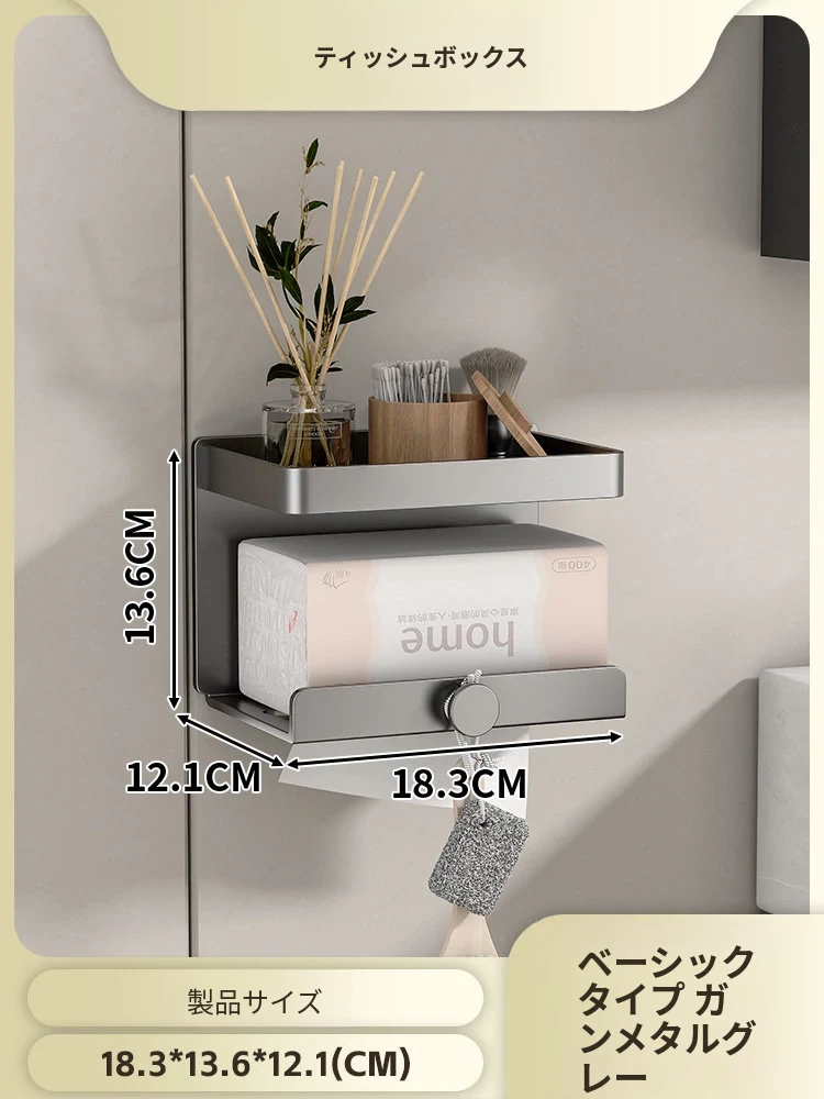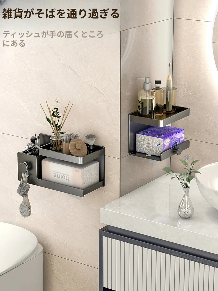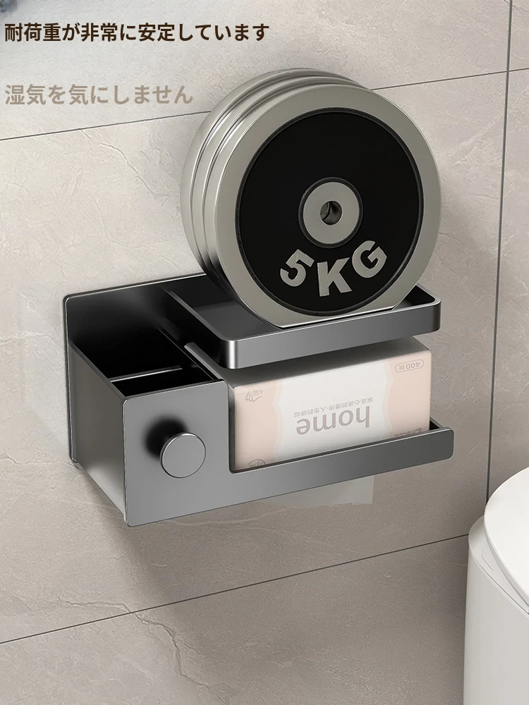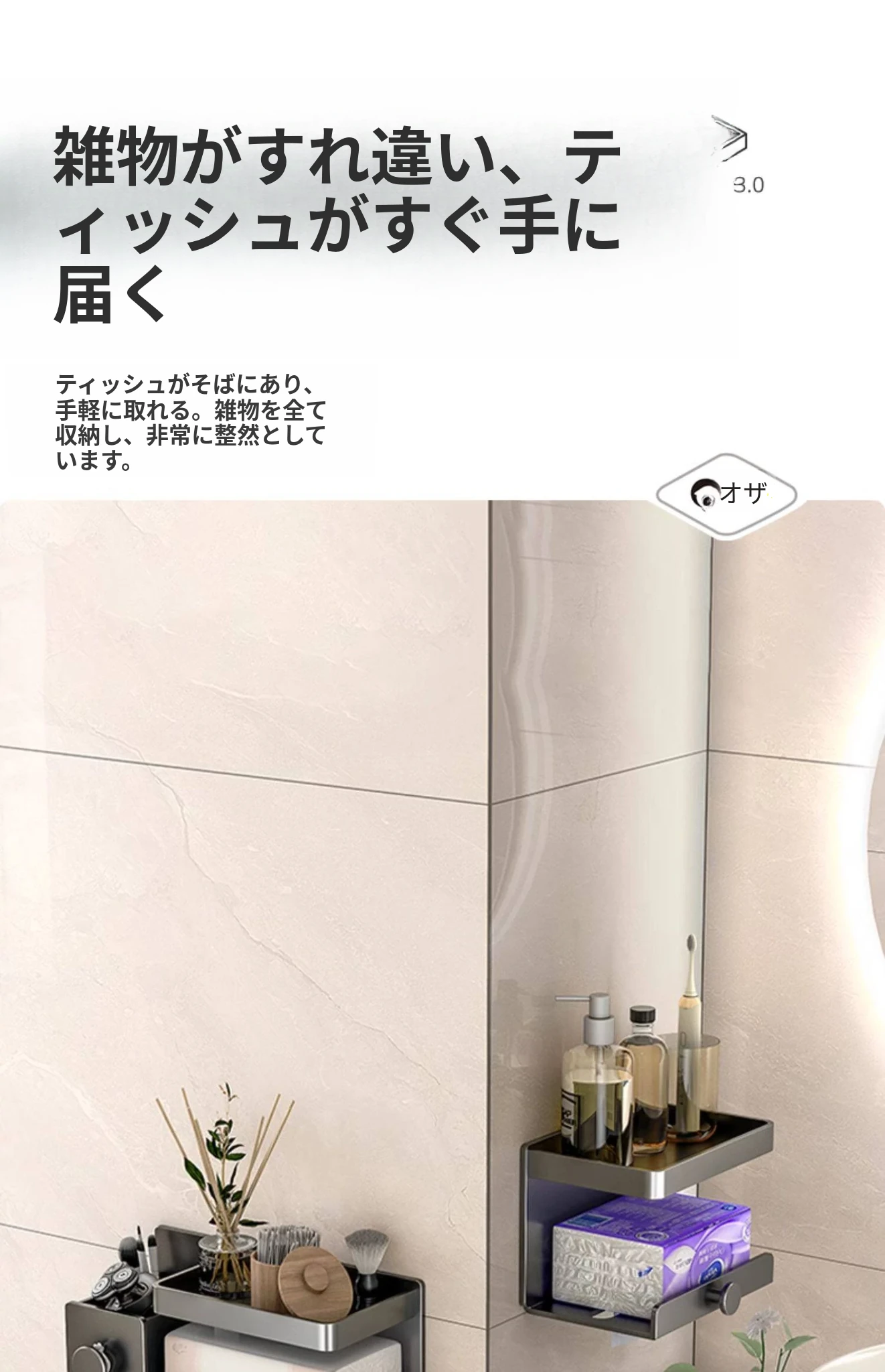 壁掛け式トイレットペーパー収納ボックス - ノーホール取り付け、バスルームやリビングに最適!ティッシュや洗顔タオルをスッキリ整理できる雑貨収納ラック。おしゃれで実用的な空間作りをサポートします!