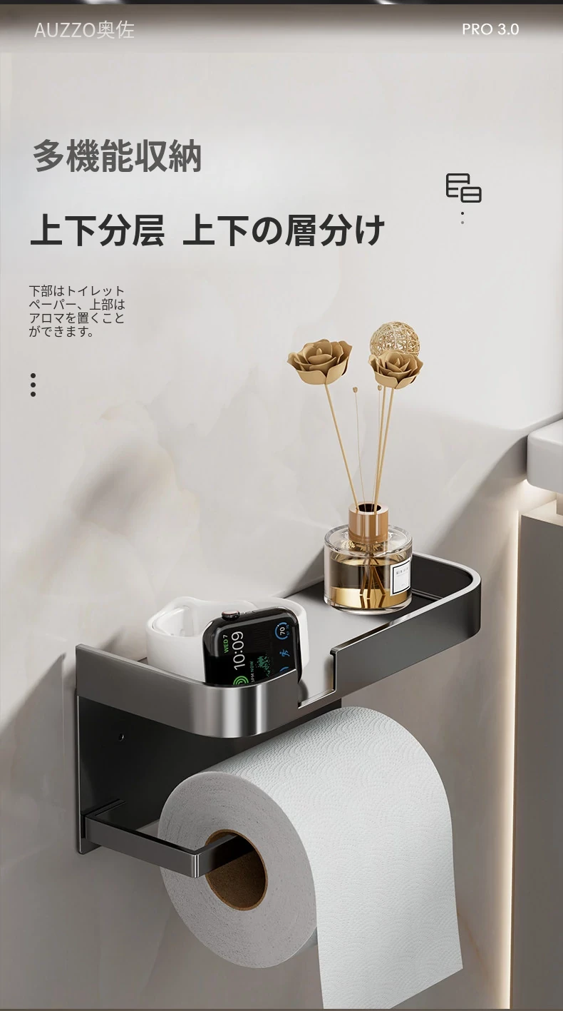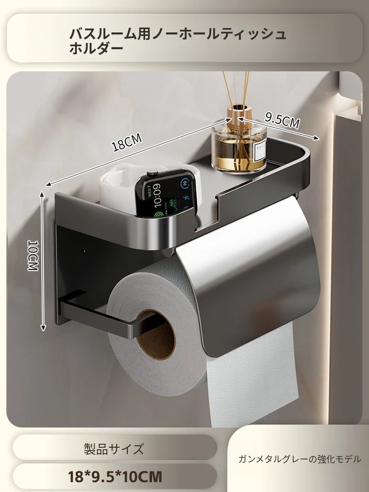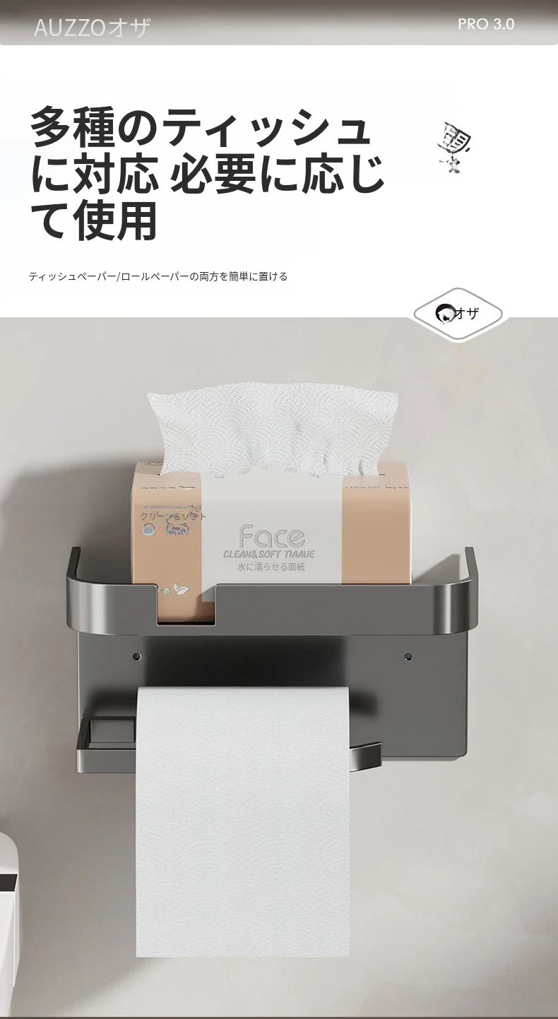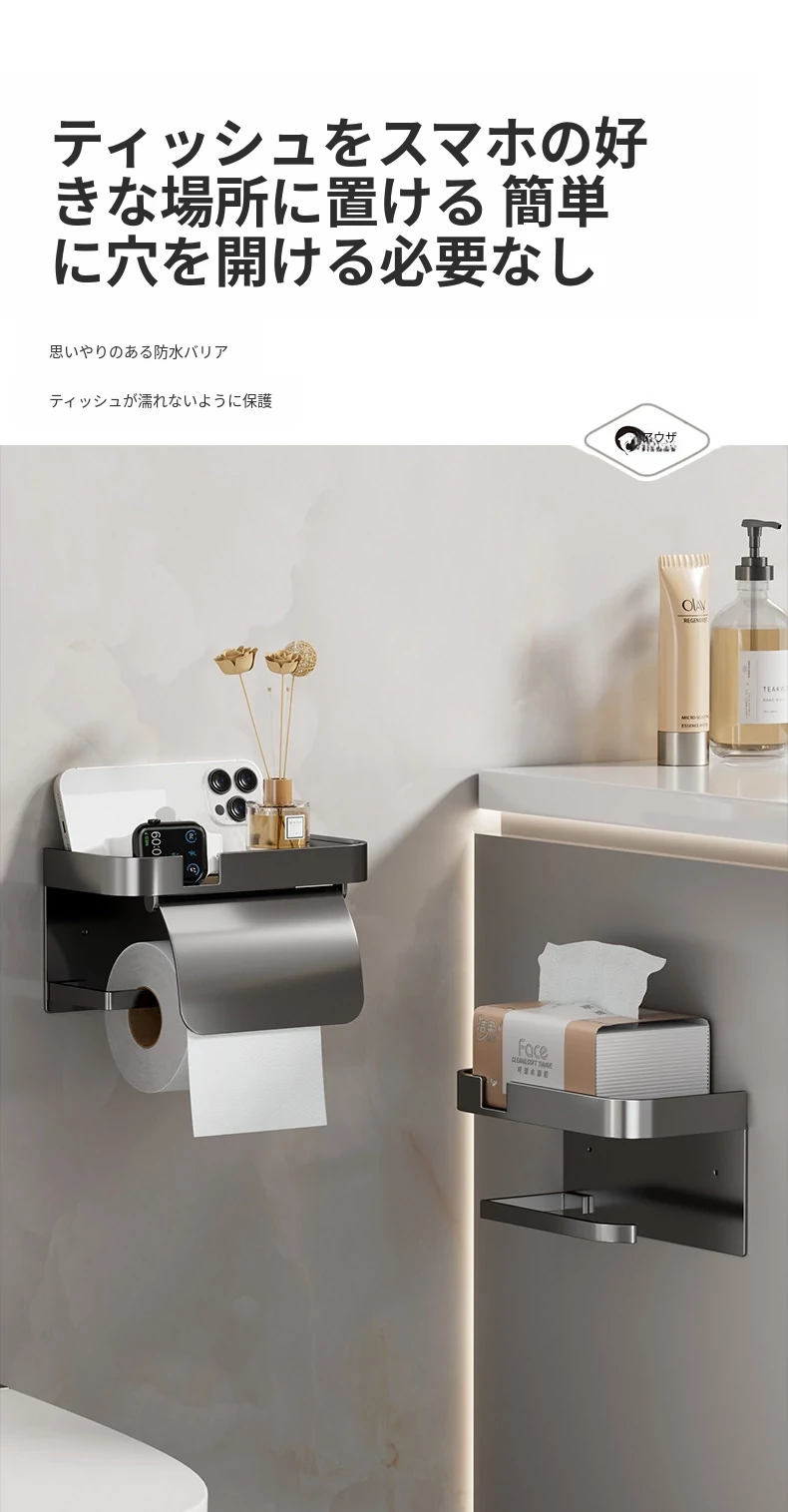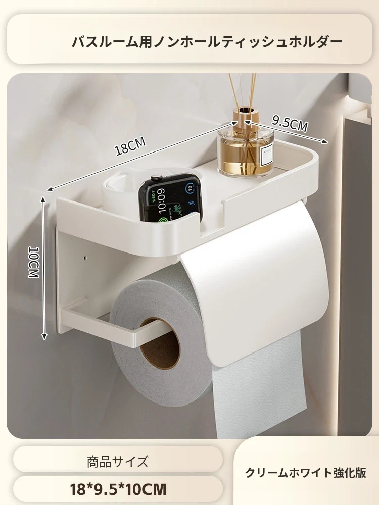 トイレ用壁掛けトイレットペーパー収納ボックス - 簡単取り付け、穴あけ不要!バスルームや洗面所に最適なトイレットペーパーラックで、すっきり整理整頓!