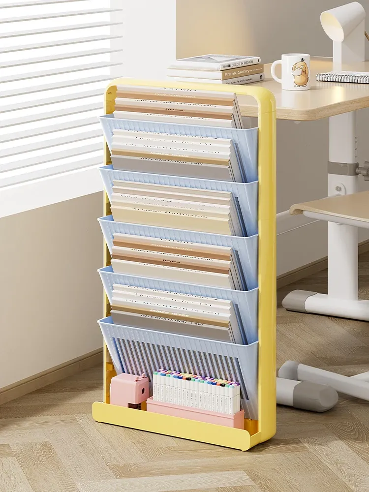 教室や自宅に最適!移動可能なデスクサイド書棚 - 学生の教科書やノートをすっきり整理できる、スタイリッシュな収納ラック。限られたスペースを有効活用し、学習環境を整えましょう!