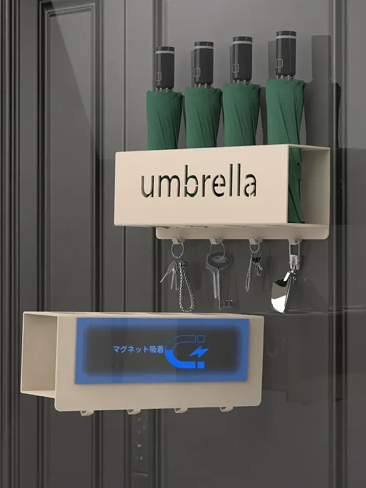 マグネット式壁掛け傘収納ラック - 家庭用玄関マット、ドア後ろに取り付けるだけで鍵も収納できる便利なアイテム!穴を開けずに簡単設置、すっきりとした玄関を実現します。