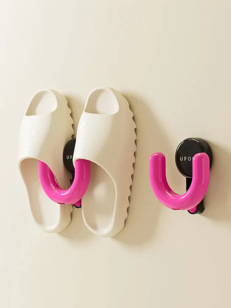 バスルーム用スリッパラック 吸盤式で簡単取り付け!壁に取り付けてスリッパをスッキリ収納できる、便利なドレインフックです。トイレや洗面所に最適なアイテム!