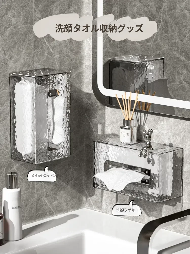 軽奢感漂う壁掛け洗顔タオル収納ボックス - アイスクリスタルデザインのティッシュボックス、バスルームやトイレに最適!おしゃれで便利な抽紙ボックスで、清潔な空間を演出します。