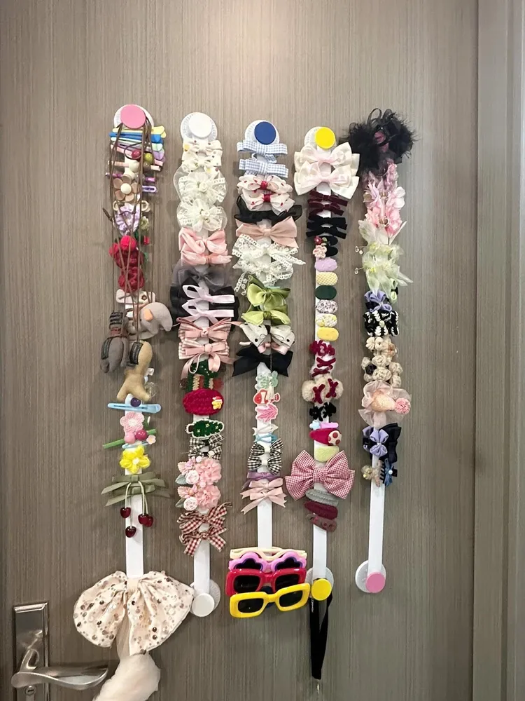 壁掛けヘアアクセサリー収納ポケット - 髪留め、ヘアゴム、子供用ヘアピンをすっきり整理!ドアの後ろに簡単設置できる便利なアイテムで、可愛いお子様のアクセサリーをすぐに取り出せます。