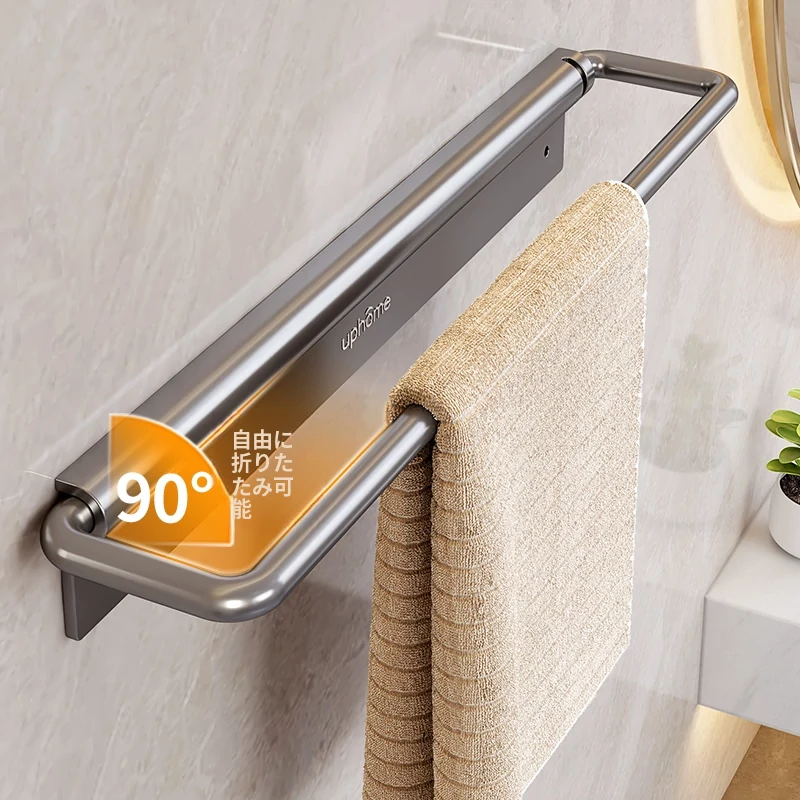 穴を開けずに取り付け可能!スペースアルミ製タオルラック、折りたたみ式で省スペース!洗面台やバスルームに最適な収納&ディスプレイラック!壁掛けタイプで衛生的に保つ!