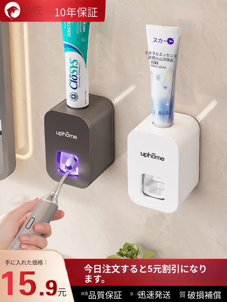 全自動歯磨き粉ディスペンサー!壁掛け式で取り付け簡単!お子様も使いやすい便利な収納ラック付き!これで毎日の歯磨きがもっと楽しくなる!