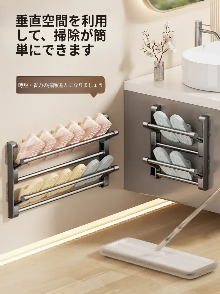 省スペース!バスルーム用壁掛けスリッパラック - 簡単設置の多層型、経済的な家庭用スリッパホルダーで、整理整頓もスムーズに!