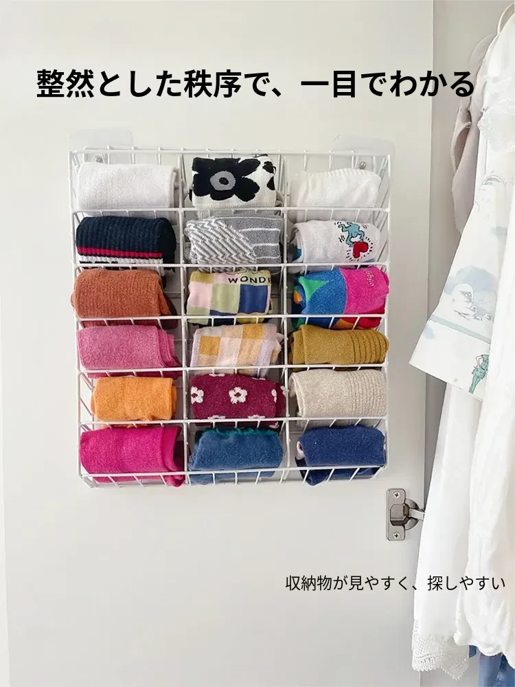 靴下収納の神!クローゼットの内側を有効活用する壁掛け式インナー分けボックス。学生寮にも最適な便利アイテム!シンプルでスタイリッシュなデザインで、収納も楽々♪