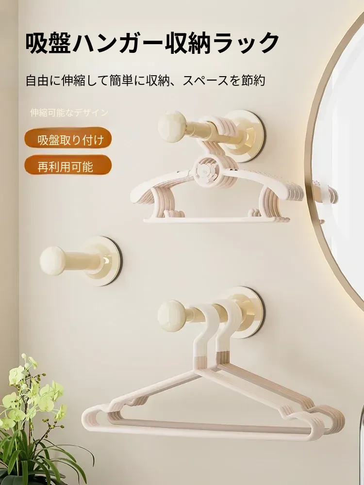 吸盤式衣類ハンガー収納神器!家で使える、穴を開けずに取り付けられるバルコニー壁掛け多機能伸縮整理ラック。洗濯物もスッキリ!おしゃれで便利なハンガーラックです。