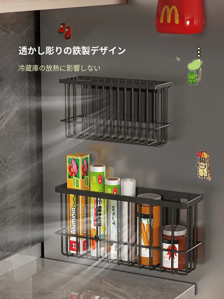 キッチン冷蔵庫サイドマグネット収納ラック 壁掛け式・穴あけ不要・隙間にフィット!多機能スパイス収納の必需品!整理整頓が簡単に!