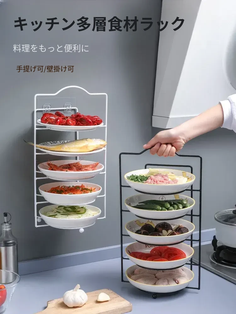 キッチンの食材収納ラック!料理の準備をスムーズにする多機能シェルフ、人気の調理スタイルで、野菜や道具を効率よく整理。多層構造で、キッチンがスッキリ整う便利アイテム!
